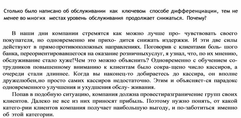 Столько было написано об обслуживании как ключевом способе дифференциации, тем не менее во многих местах уровень обслуживания продолжает снижаться. Почему?