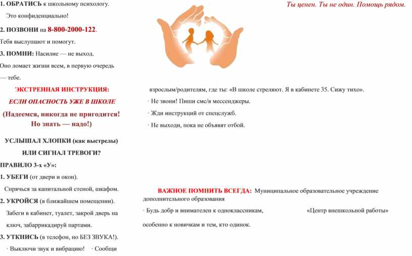 Поддержка одного человека может всё изменить. ПЯМЯТКА