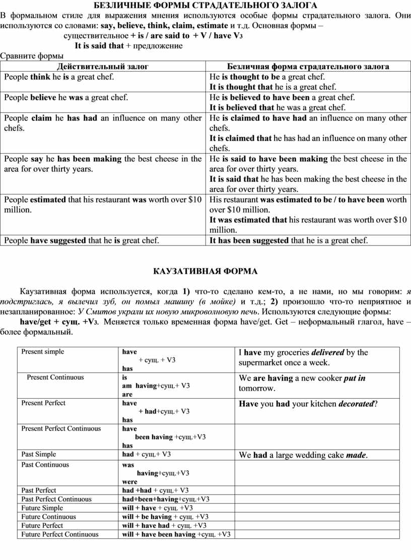 В формальном стиле для выражения мнения используются особые формы страдательного залога. Они используются со словами: say, believe, think, claim, estimate и т.д. Основная формы –