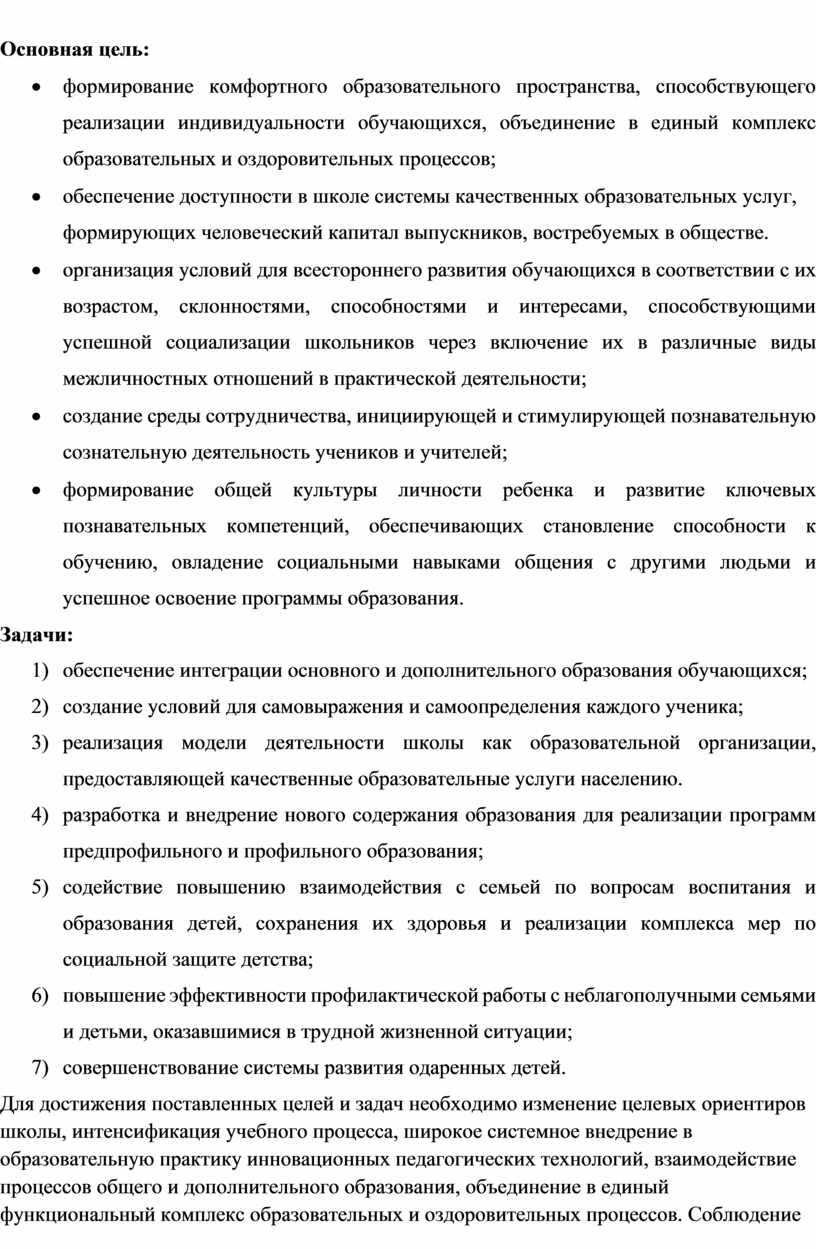 · обеспечение доступности в школе системы качественных образовательных услуг, формирующих человеческий капитал выпускников, востребуемых в обществе.