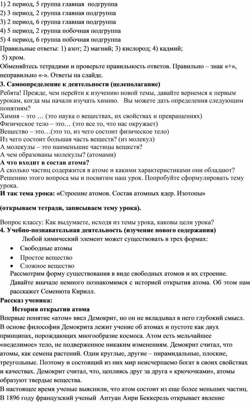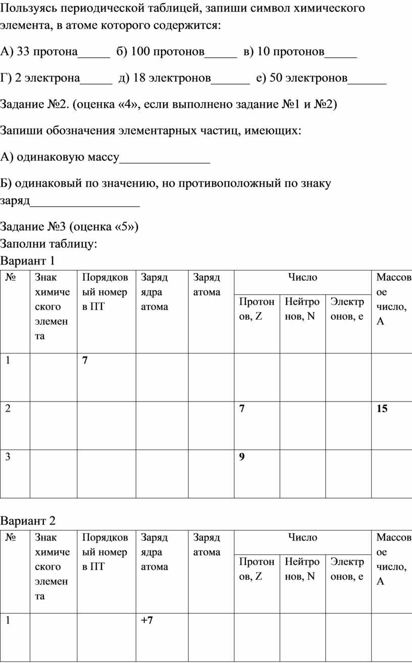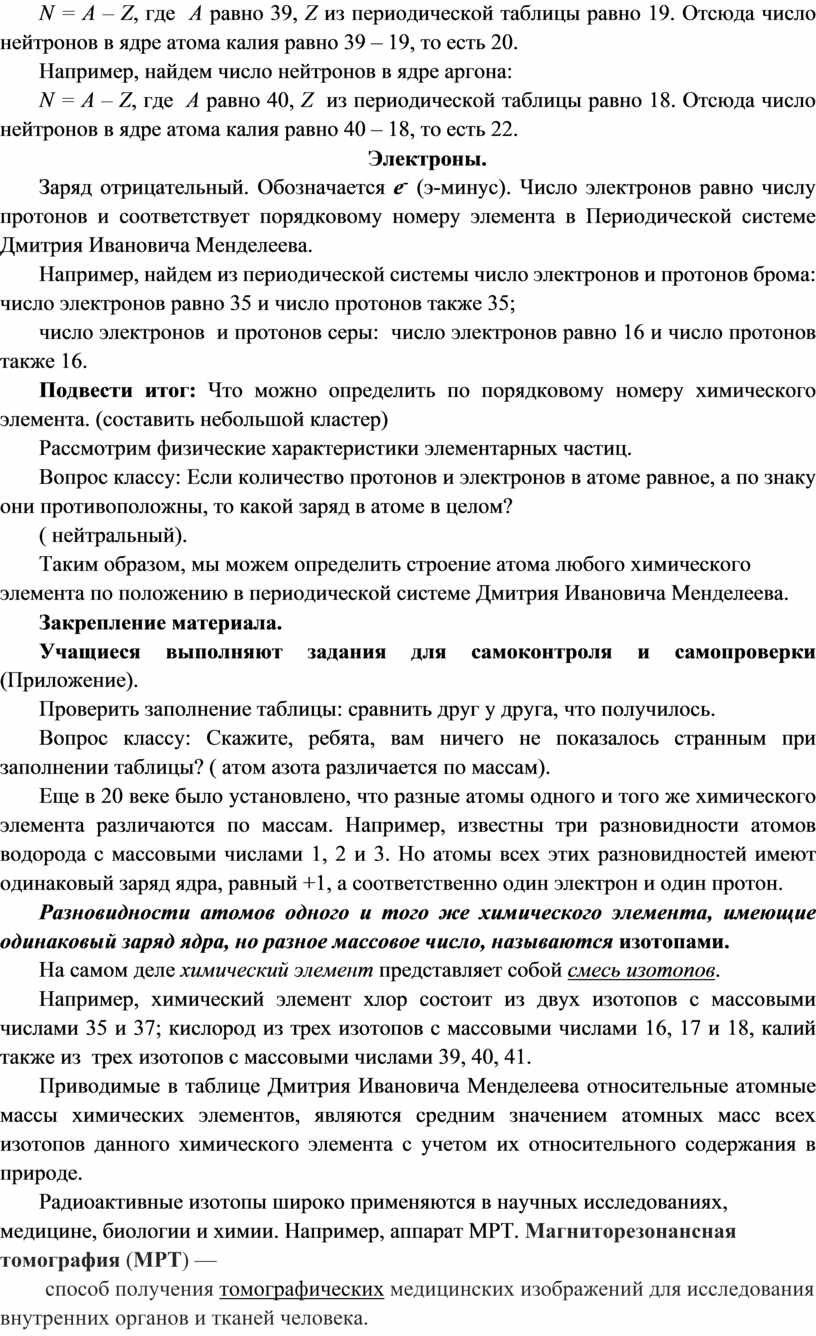 - Научить пользоваться Периодической системой химических элементов Менделеева для определения состава атома