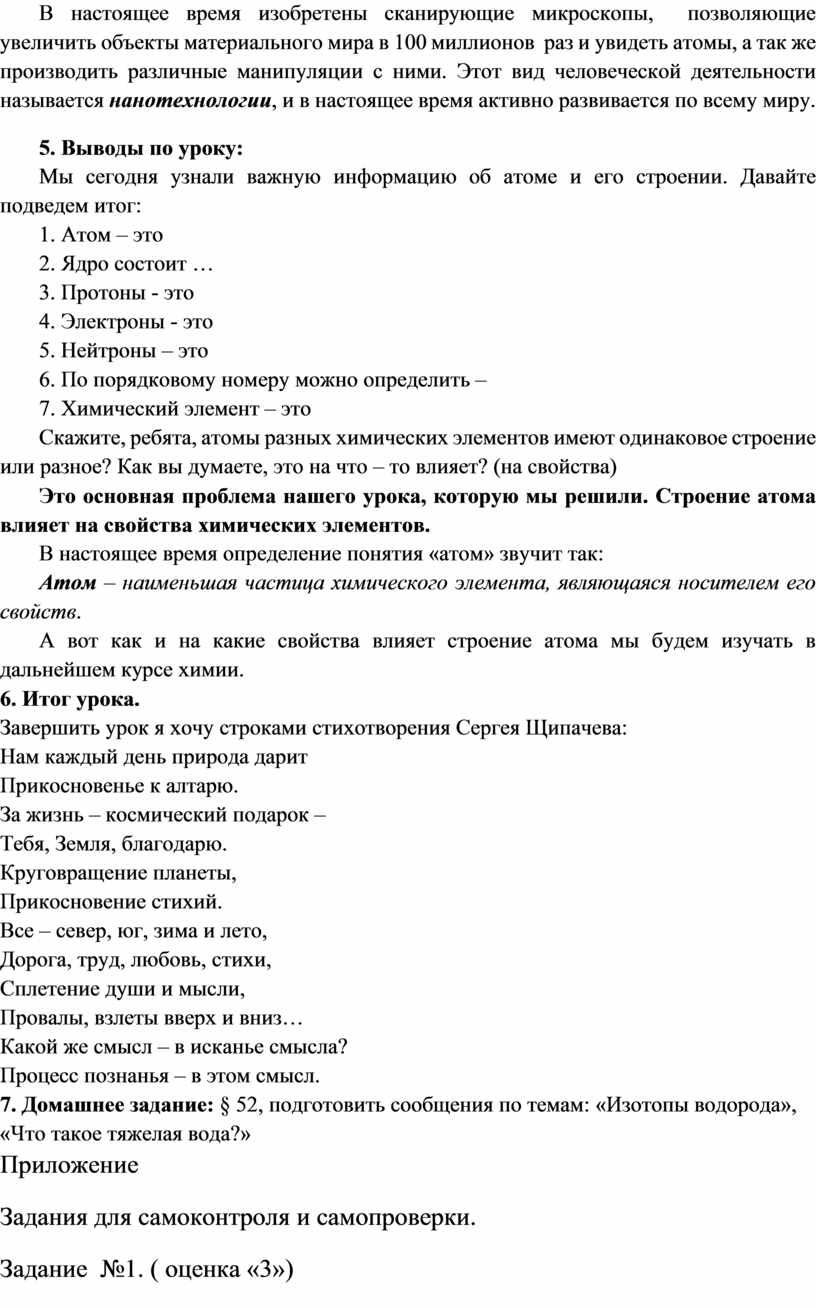 («неделимый») не соответствует действительности - атом делим. Дать понятие о