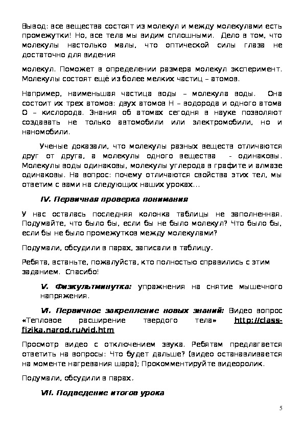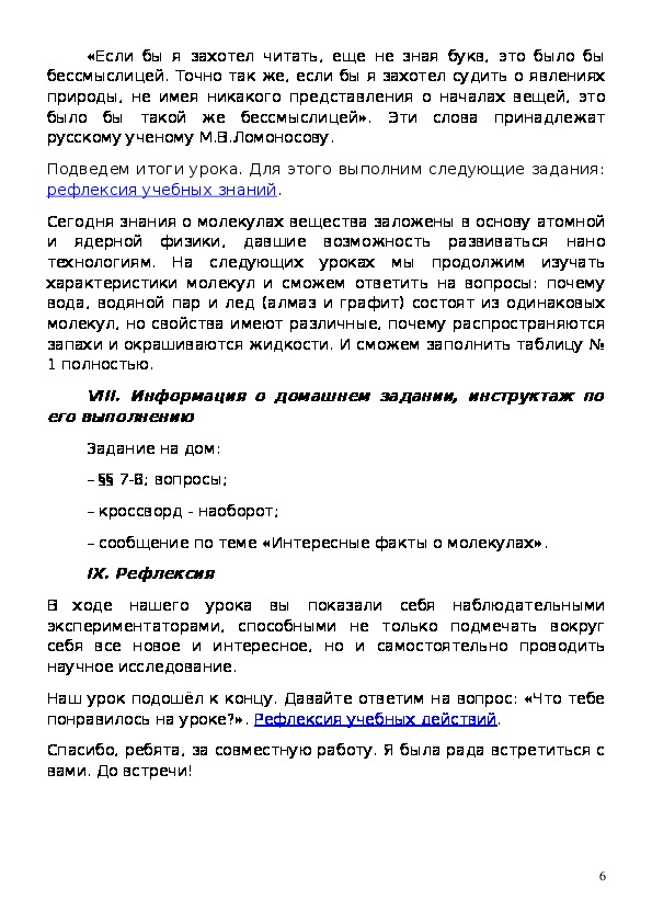 сегодняшнего урока «Строение вещества. Молекулы и атомы» .