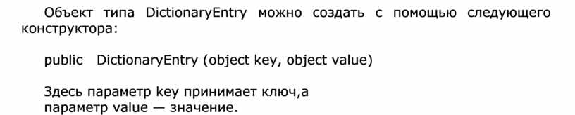 Объект типа DictionaryEntry можно создать с помощью следующего конструктора: