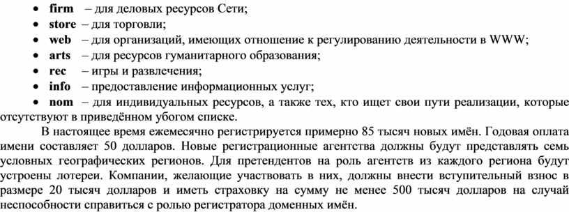 · web – для организаций, имеющих отношение к регулированию деятельности в WWW;