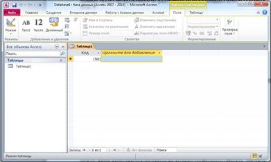 рабочая область. Разделена на два подокна: в левом отображается список всех объектов MS Access, сгруппированный по категориям (таблицы, запросы, формы, отчеты и т.д.); в правом – открытые объекты. Переключение между ними выполняется щелчком на ярлыке требуемого объекта. Щелчок правой кнопки мыши на ярлыке объекта открывает контекстное меню.