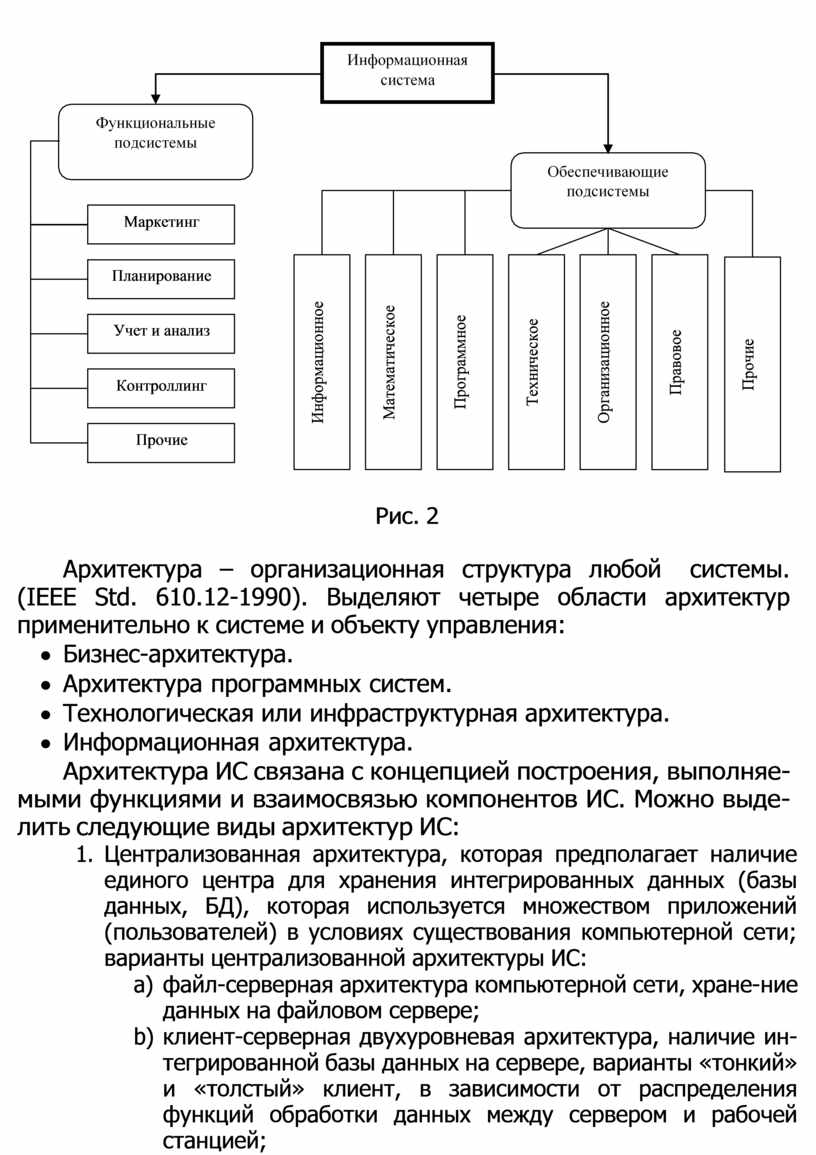 Архитектура ИС связана с концепцией построения, выполняе- мыми функциями и взаимосвязью компонентов ИС. Можно выде- лить следующие виды архитектур ИС: