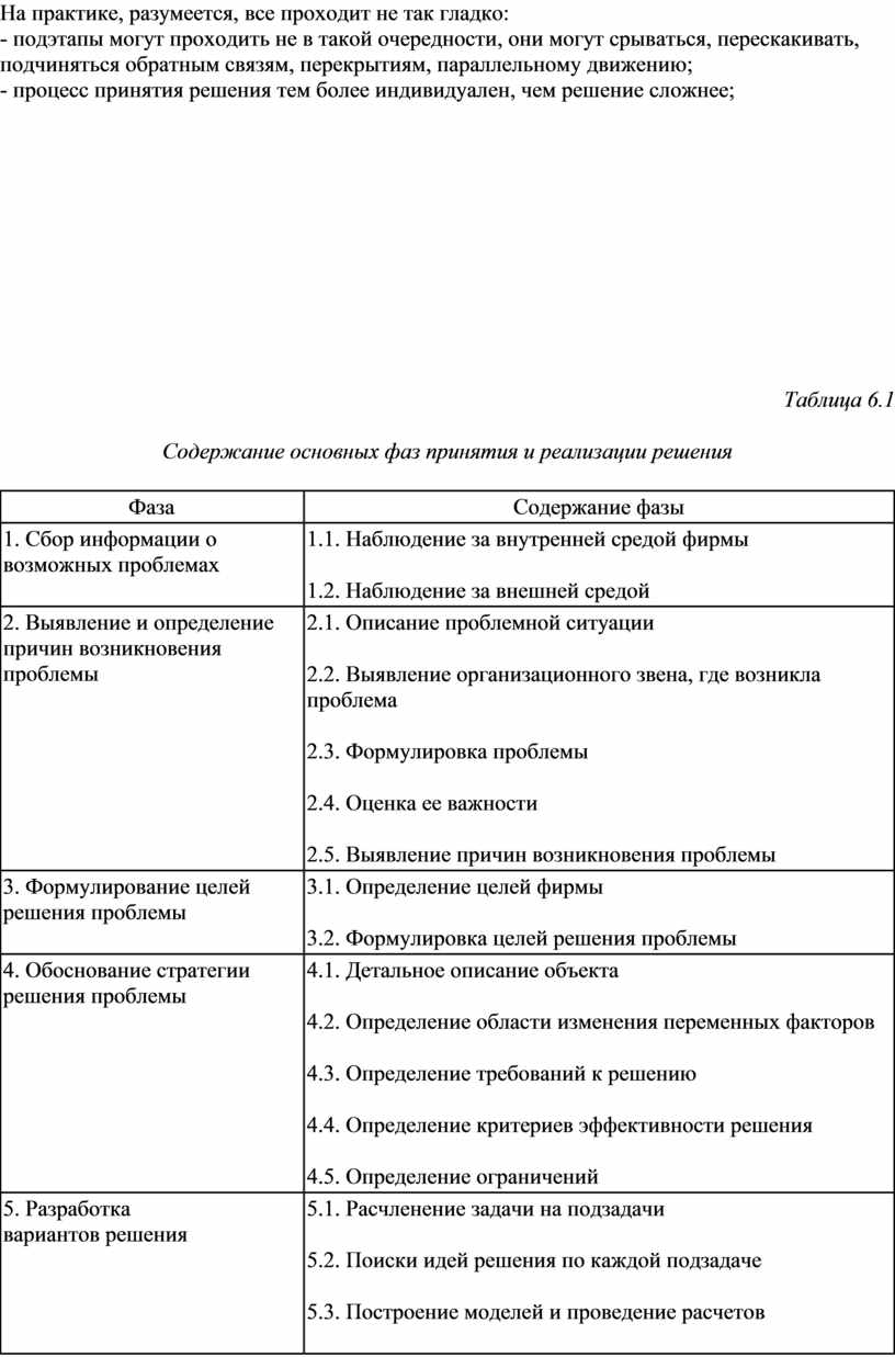 Ход решения можно рассматривать как выполнение взаимосвязанного набора этапов и подэтапов процесса решения. В каждом конкретном случае этот процесс будет естественно уточнен и индивидуализирован (табл.6.1).