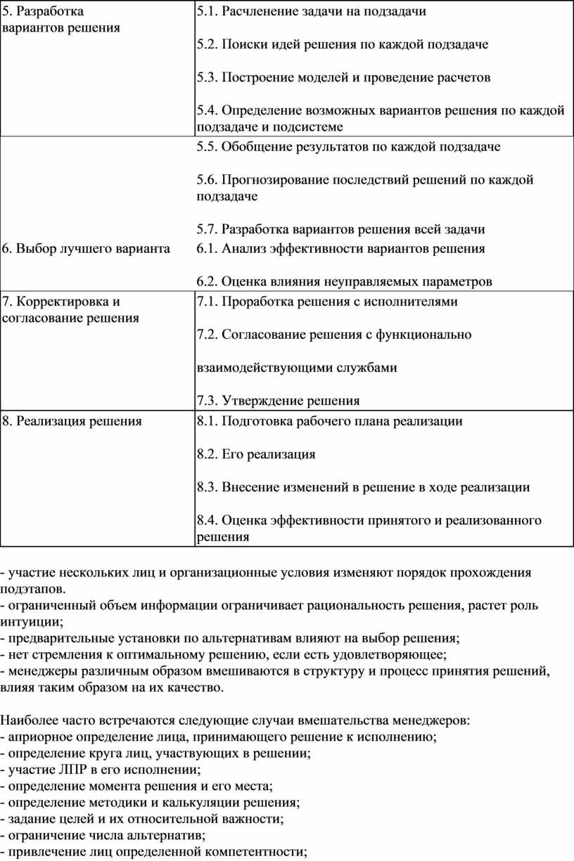 - менеджеры различным образом вмешиваются в структуру и процесс принятия