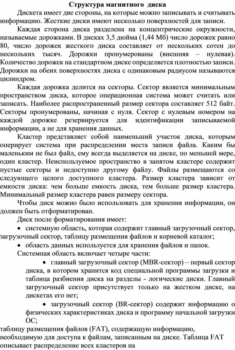 Структура магнитного диска