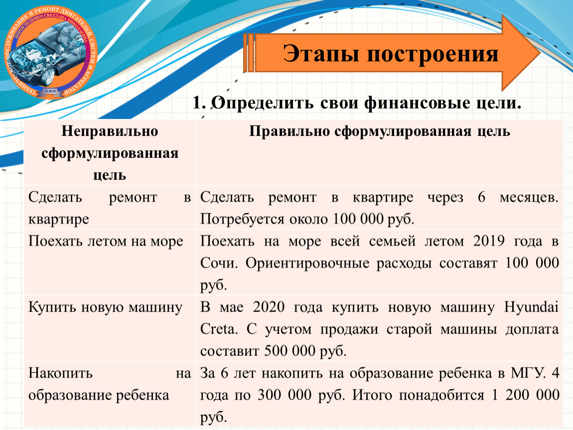 1. Определить свои финансовые цели.