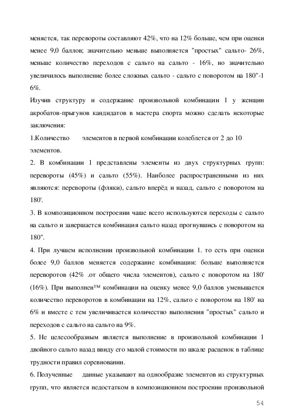 493.3. Структура и содержание произвольной комбинации 1 у женщин