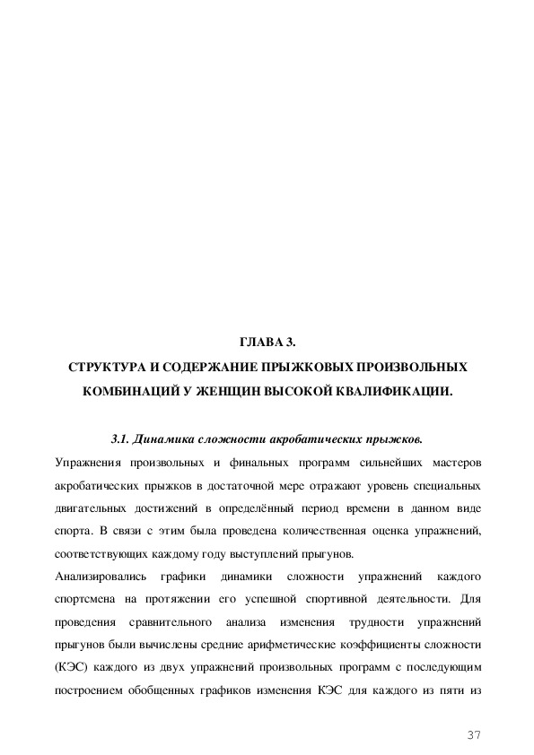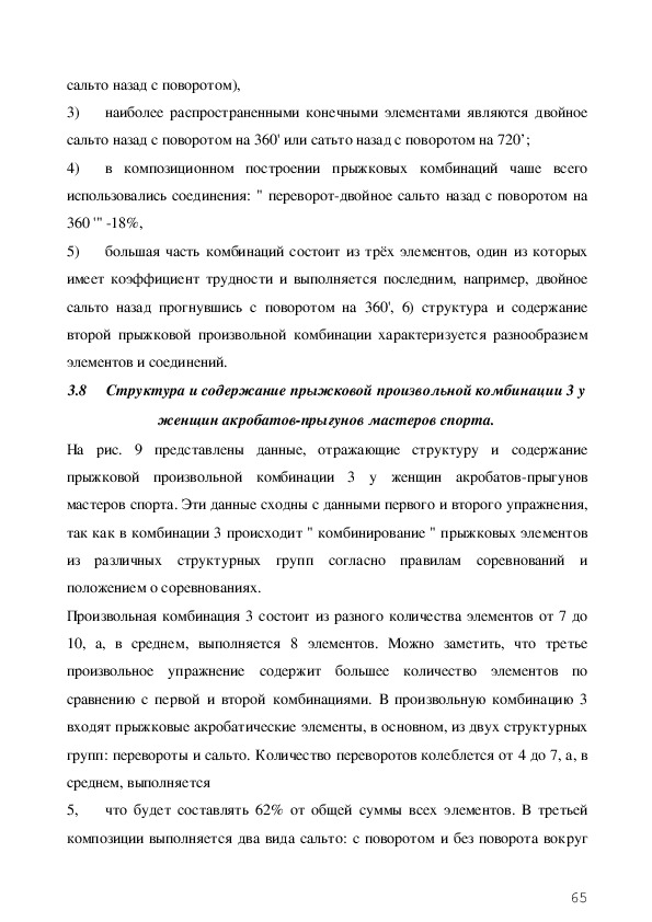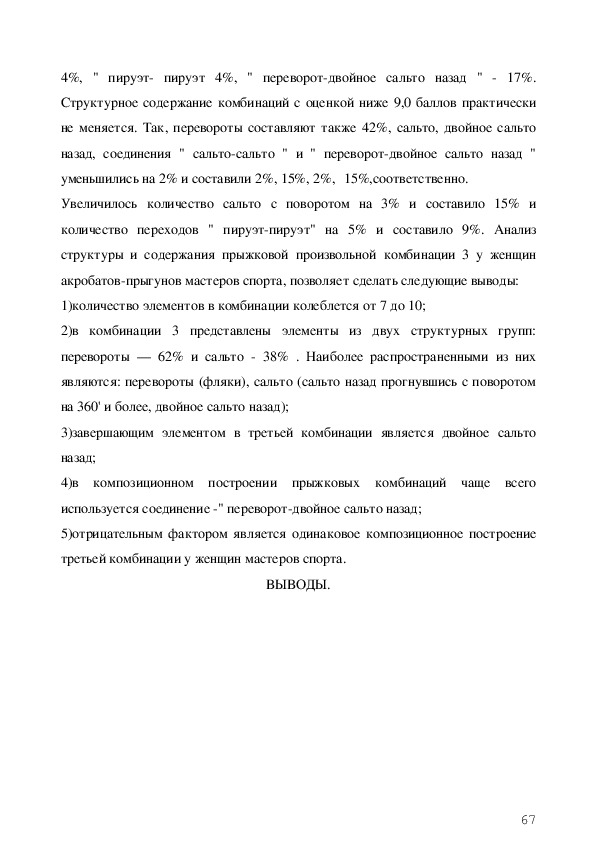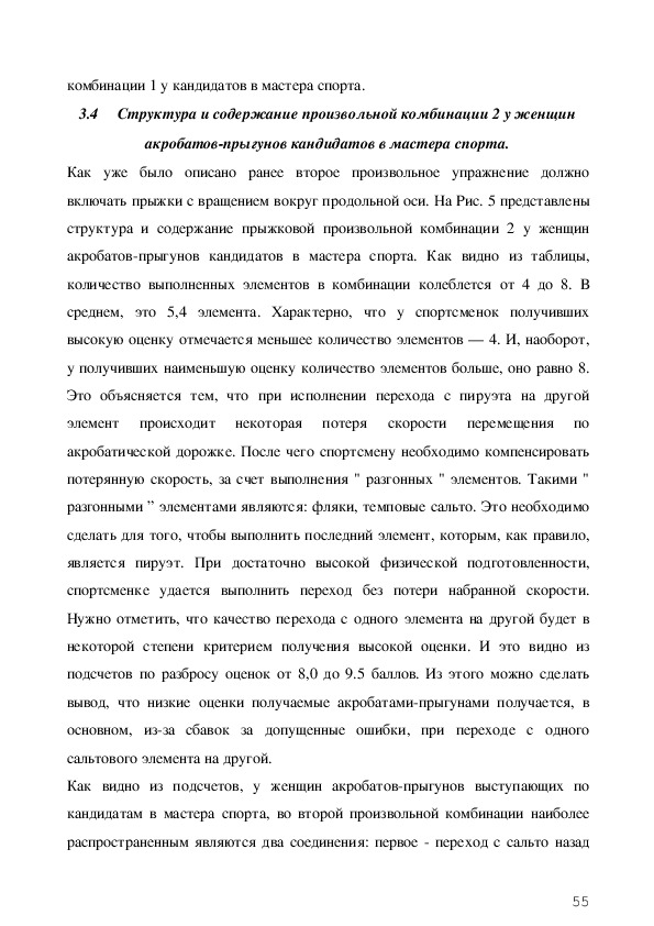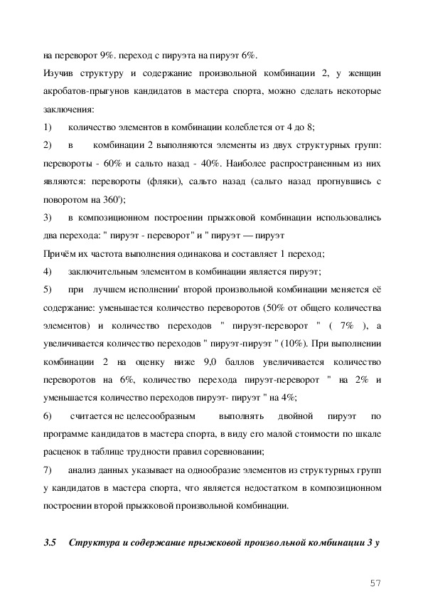 Структура и содержание трёх произвольных прыжковых комбинаций у женщин,