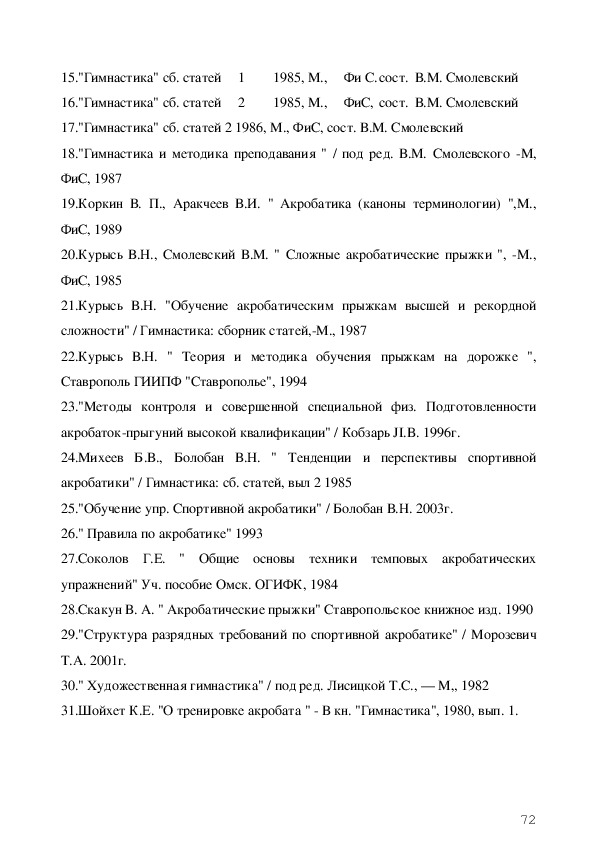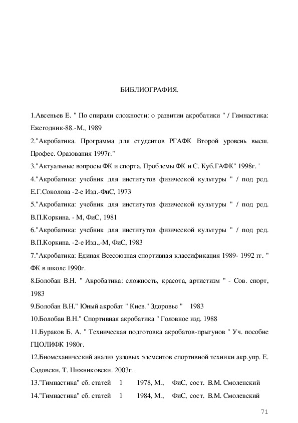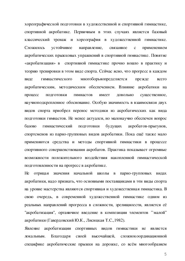 акробатики (Гавердовский Ю.К., Лисицкая Т.С.,1982).