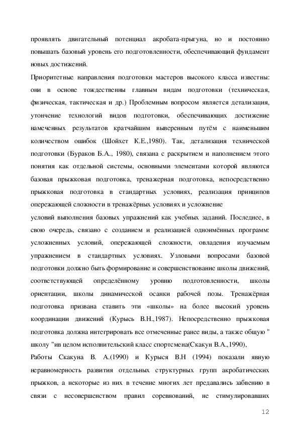 акробатическую подготовку в лёгкой атлетике, фигурном катании,
