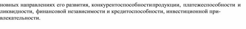 новных направлениях его развития, конкурентоспособности продукции, платежеспособности и ликвидности, финансовой независимости и кредитоспособности, инвестиционной при- влекательности.