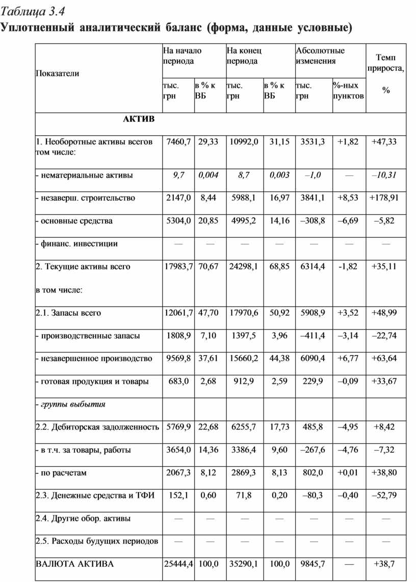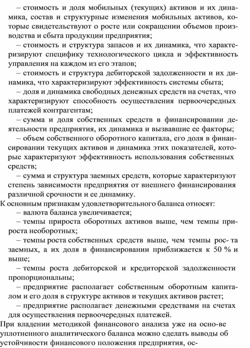 При владении методикой финансового анализа уже на осно- ве уплотненного аналитического баланса можно сделать выводы об устойчивости финансового положения предприятия, ос-