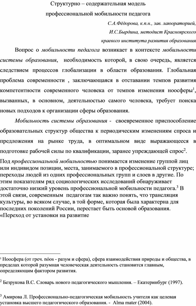 3. Амирова Л.А. Проблема профессиональной мобильности педагога и перспективные ориентиры ее развития // Образование и наука. 2009. № 8. С. 89.