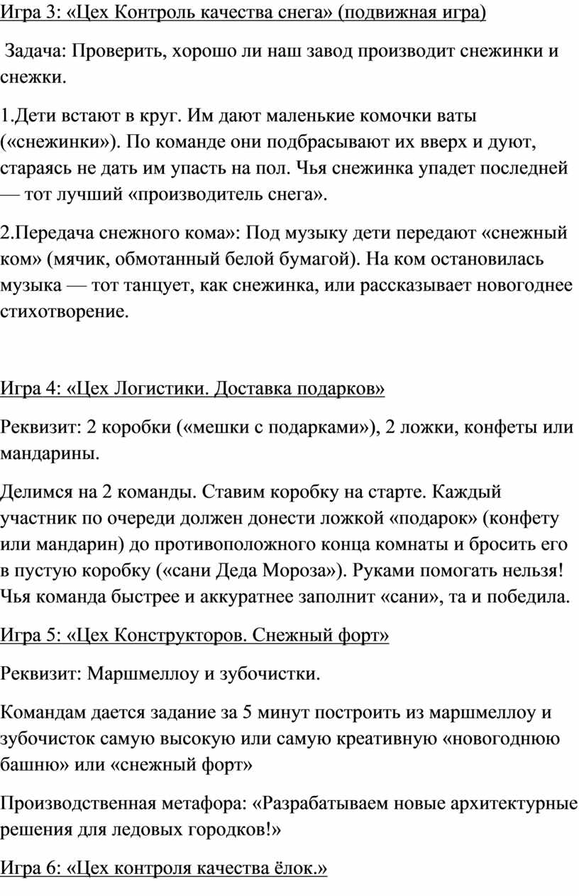 Игра 3: «Цех Контроль качества снега» (подвижная игра)