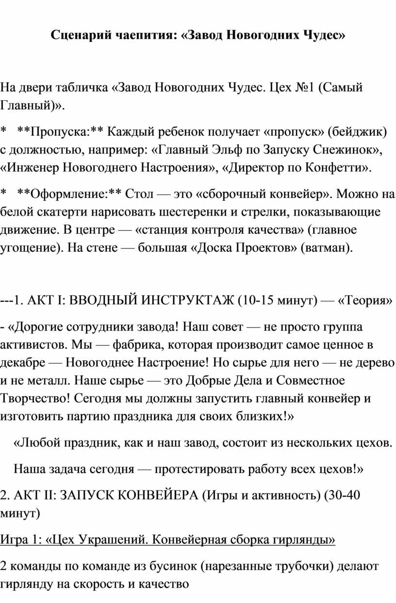 Сценарий чаепития: «Завод Новогодних Чудес»