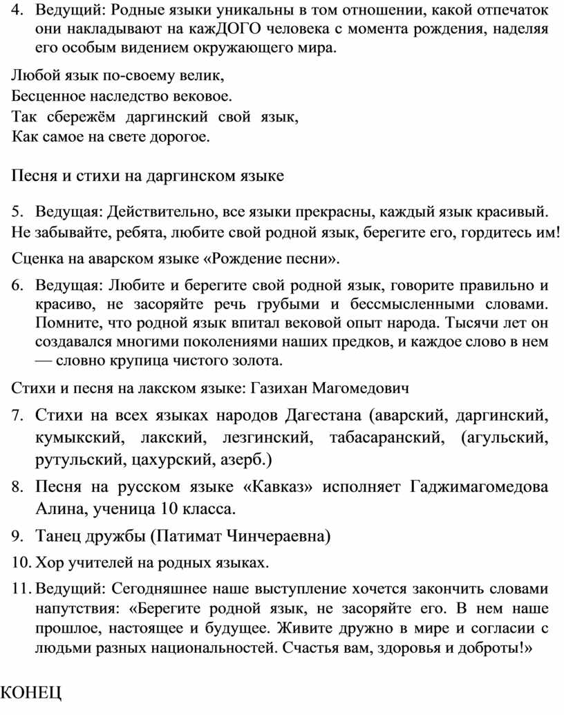 Сценарий, посвященный дню родного языка.