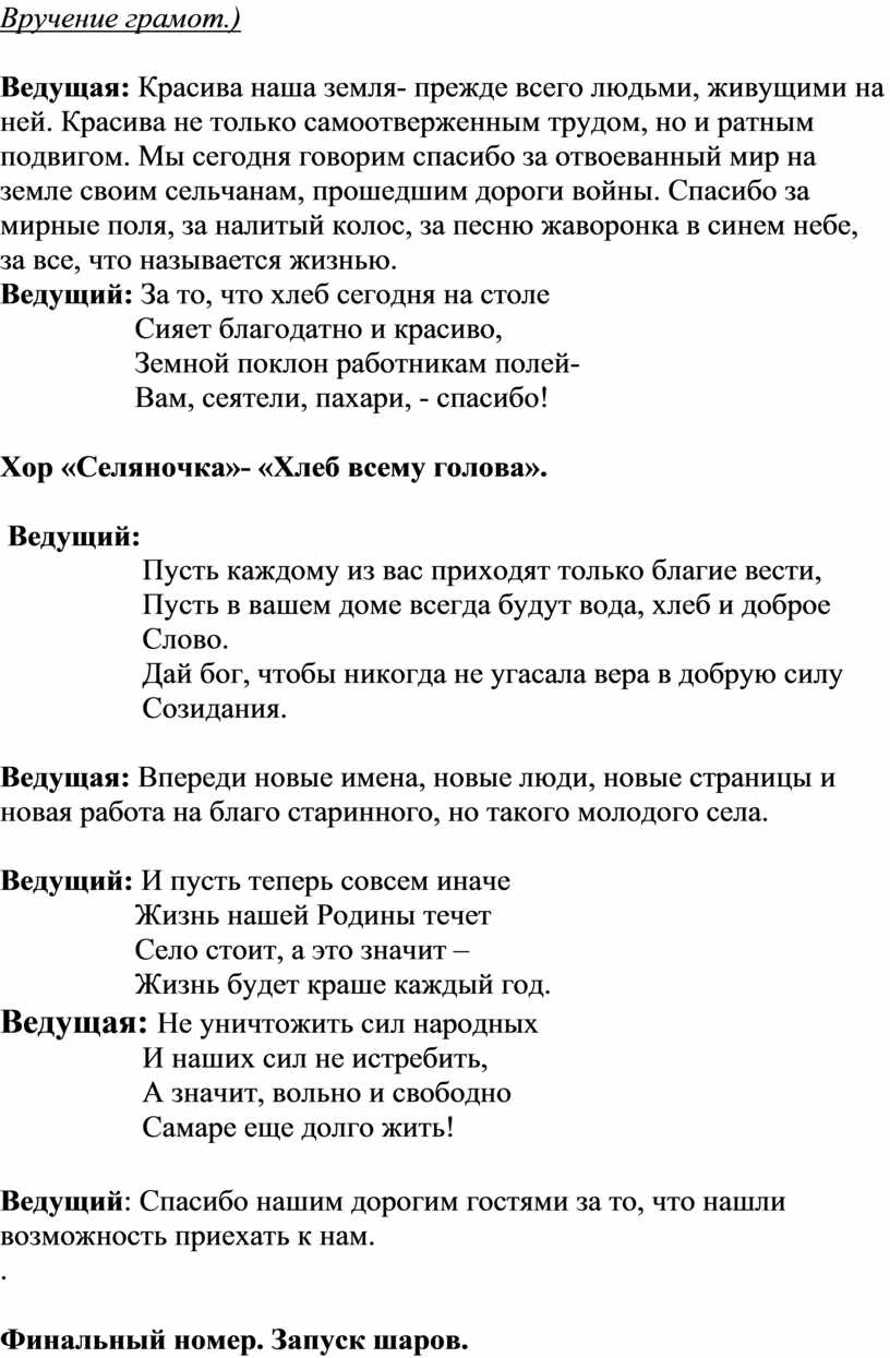 Ведущий: С праздником вас, дорогие односельчане, с днем рождения, село!