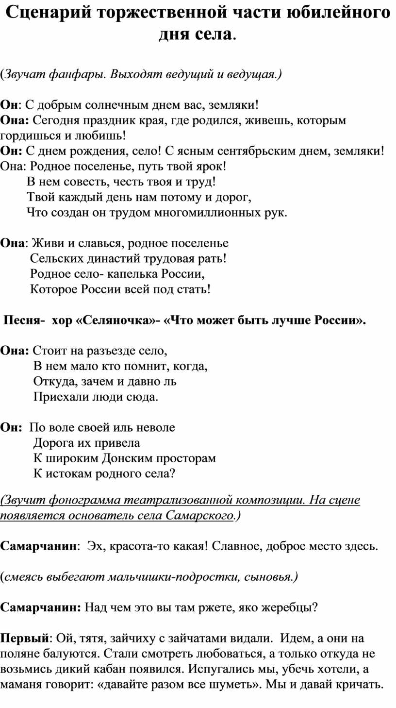 Он: С днем рождения, село! С ясным сентябрьским днем, земляки!