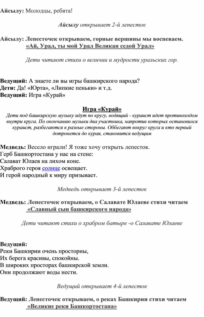 Ведущий: Лепесточек открываем, о реках Башкирии стихи читаем