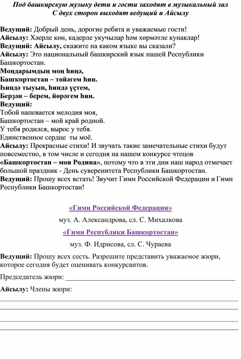 Айсылу: Прекрасные стихи! И звучать такие замечательные стихи будут повсеместно, в том числе и сегодня на нашем конкурсе чтецов «Башкортостан – моя Родина», потому что в эти дни наш народ отмечает большой праздник - День суверенитета Республики Башкортостан.