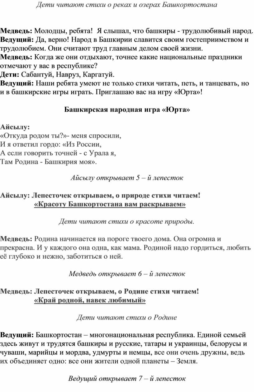 Стихи о Башкортостане и народах, населяющих его.