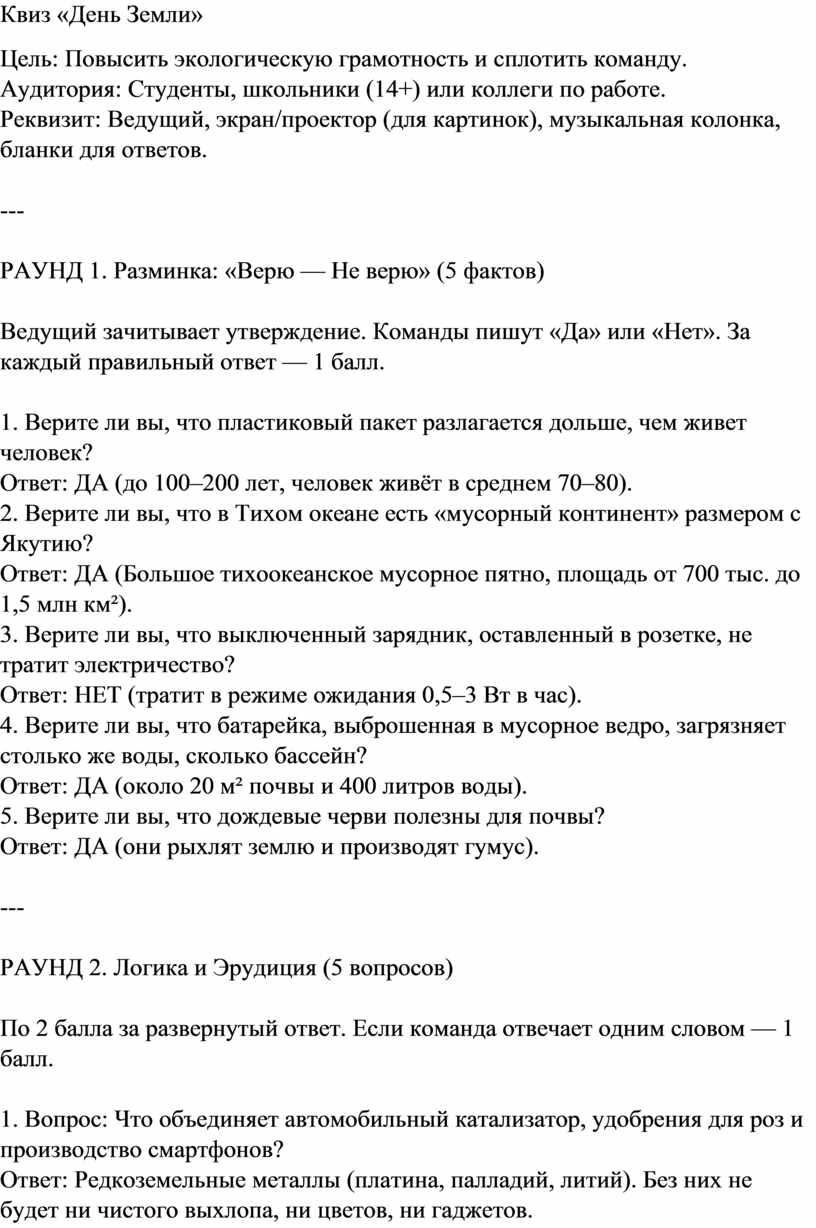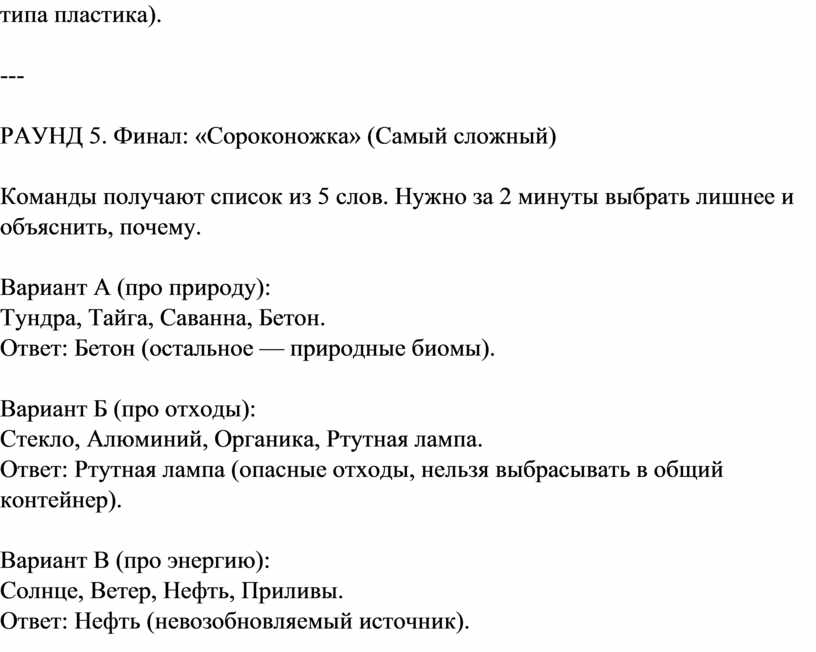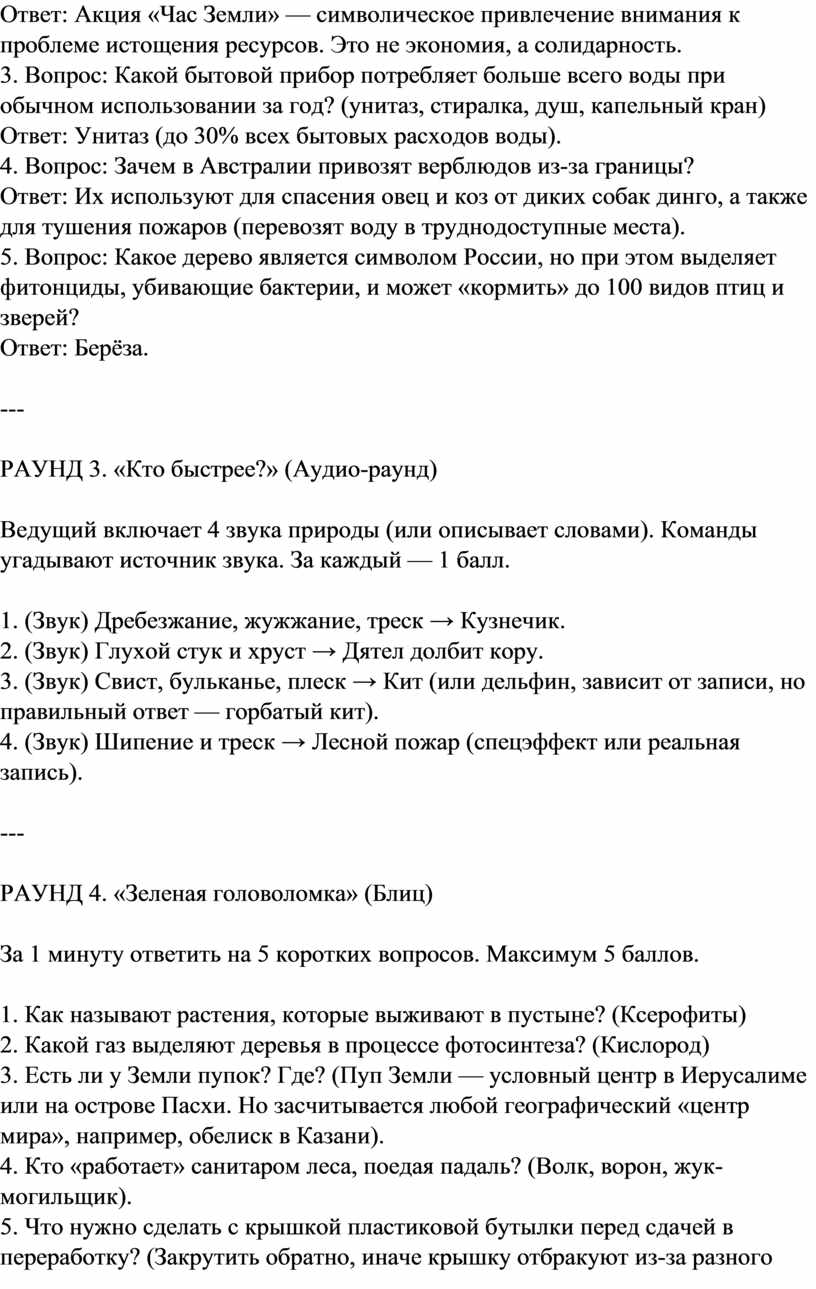 РАУНД 4. «Зеленая головоломка» (Блиц)