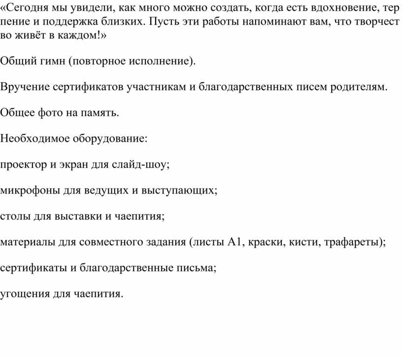Педагог благодарит родителей за поддержку, отмечает вклад каждого ребёнка.