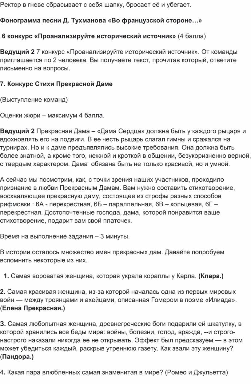 А сейчас мы посмотрим, как, с точки зрения наших участников, проходило признание в любви Прекрасным Дамам. Вам нужно составить стихотворение, восхваляющее прекрасную даму, состоящее из строфы разных способов рифмовки : 6А - перекрестная, 6Б – параллельная, 6В – кольцевая, 6Г – перекрестная. Достопочтенные господа, дама, которой понравится ваше стихотворение, подарит вам свой платочек.