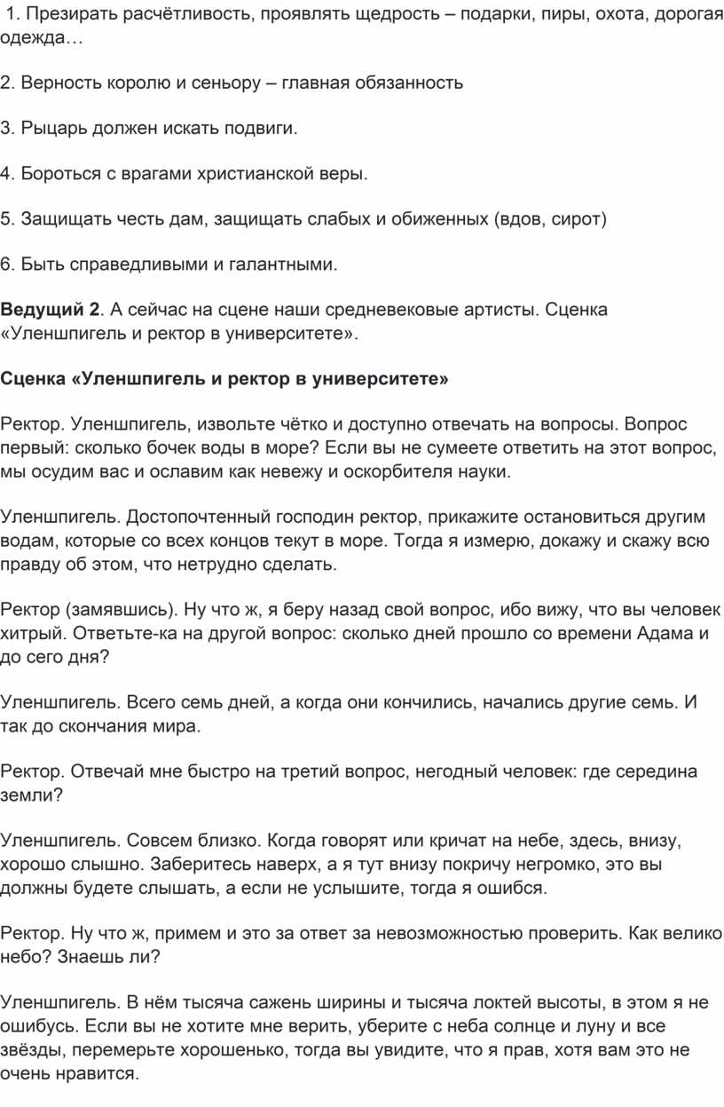 Ведущий 2. А сейчас на сцене наши средневековые артисты. Сценка «Уленшпигель и ректор в университете».