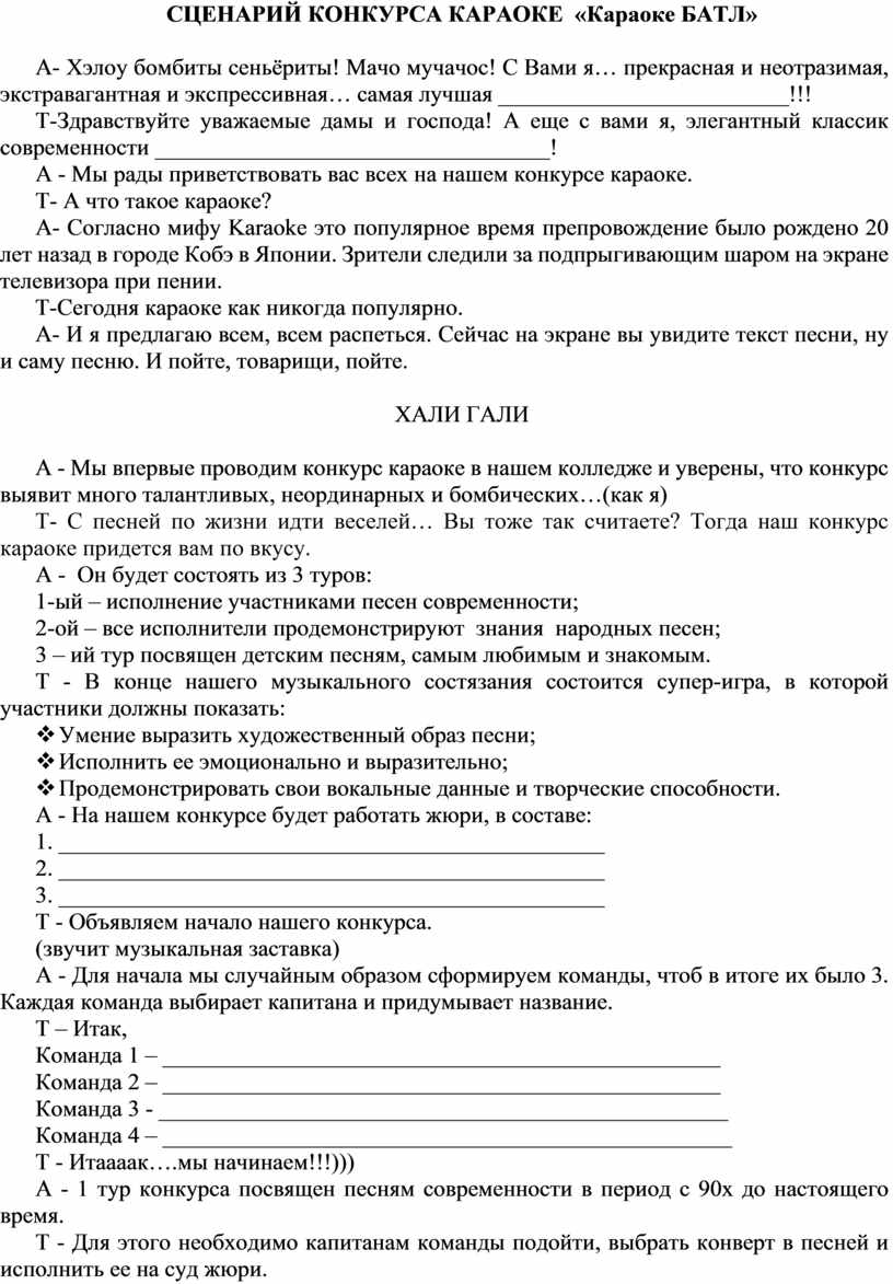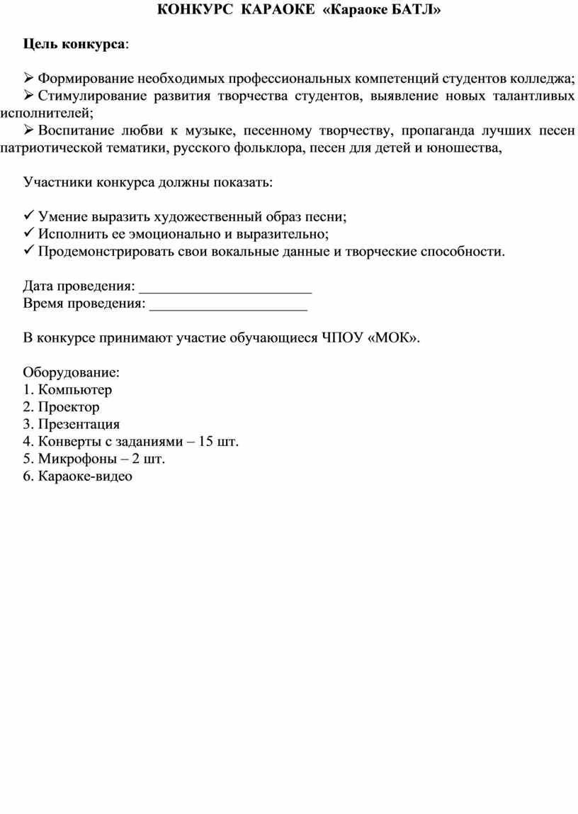 СЦЕНАРИЙ КОНКУРСА КАРАОКЕ «Караоке БАТЛ»