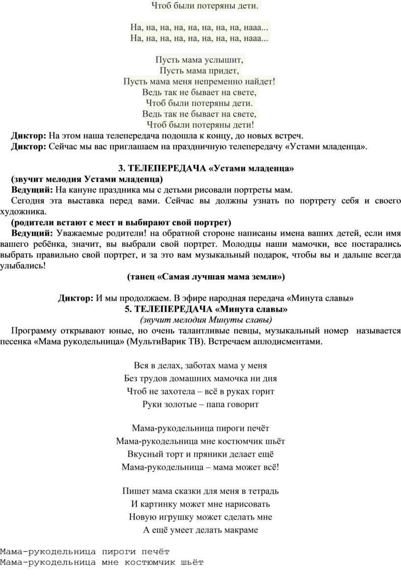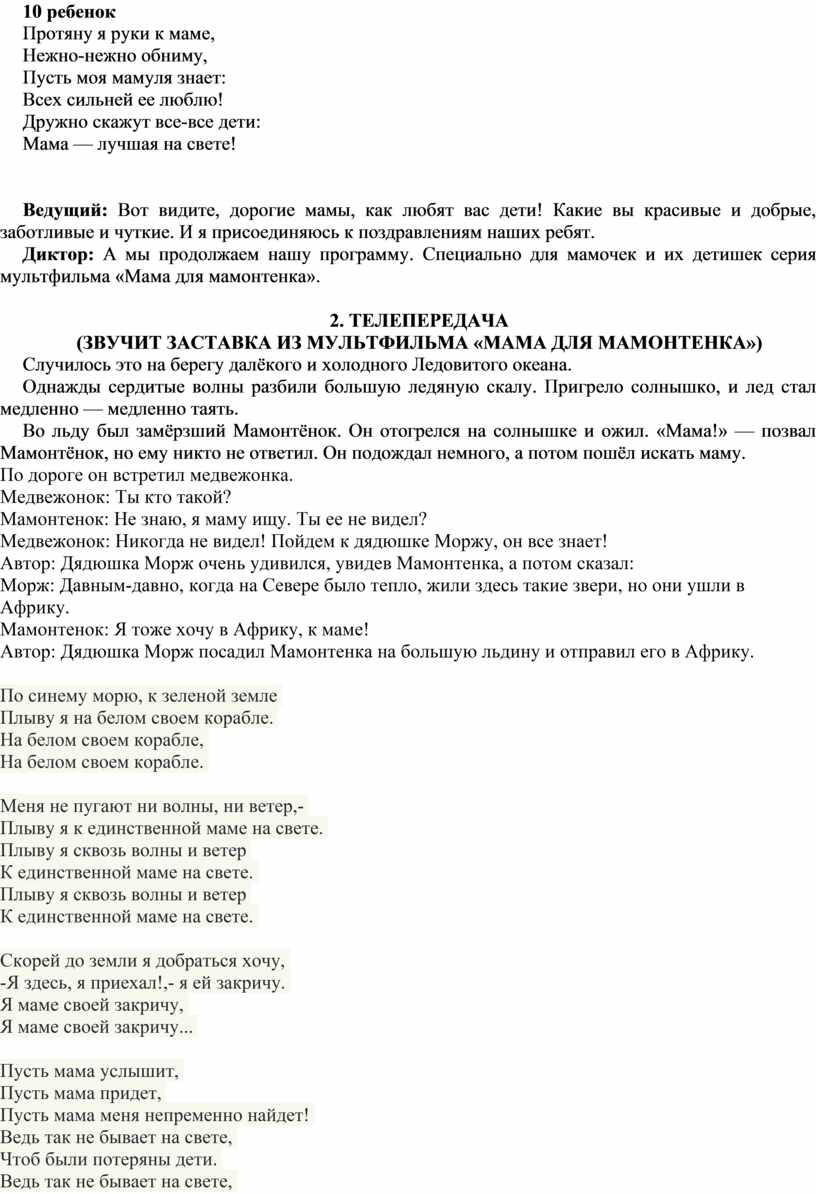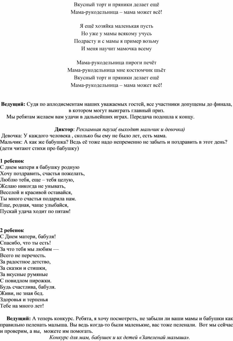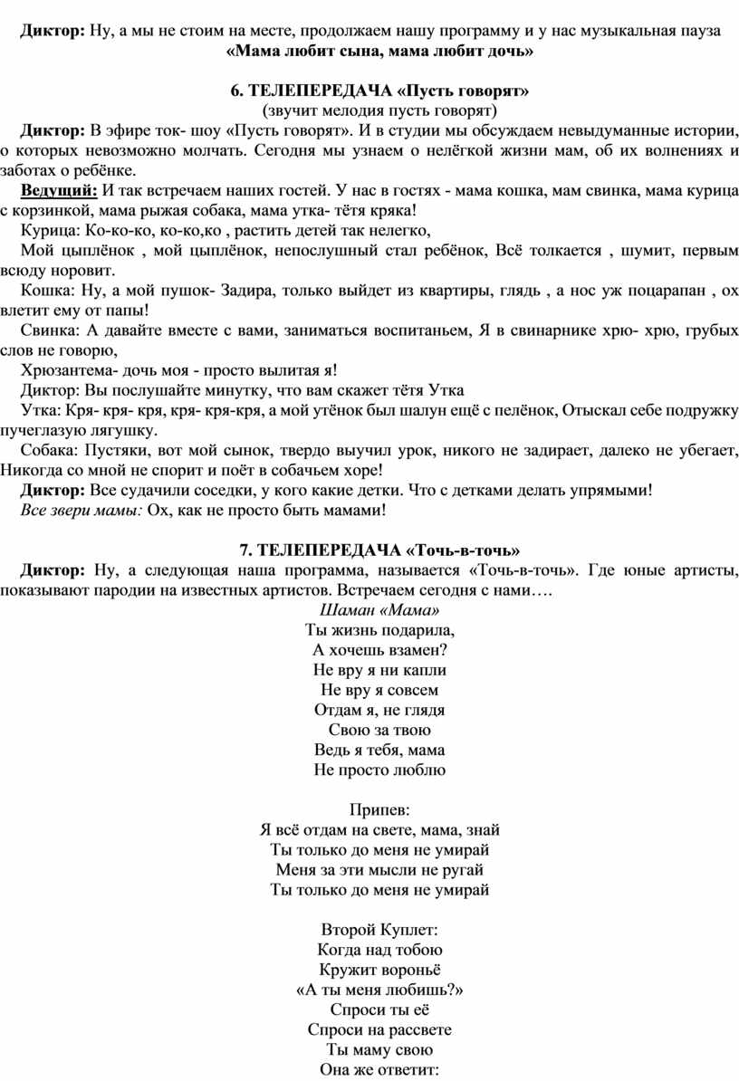 Сценарий ко Дню матери