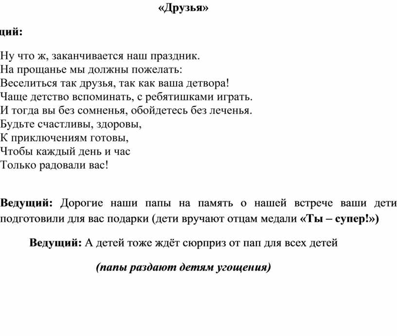 Сценарий праздничного мероприятия посвящённого дню Отца.