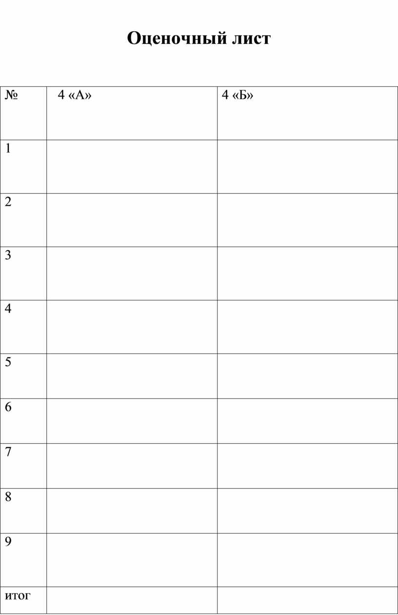 Оценочный лист