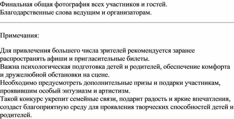 Такой конкурс укрепит семейные связи, подарит радость и яркие впечатления, создаст благоприятную среду для проявления творческих способностей детей и родителей.