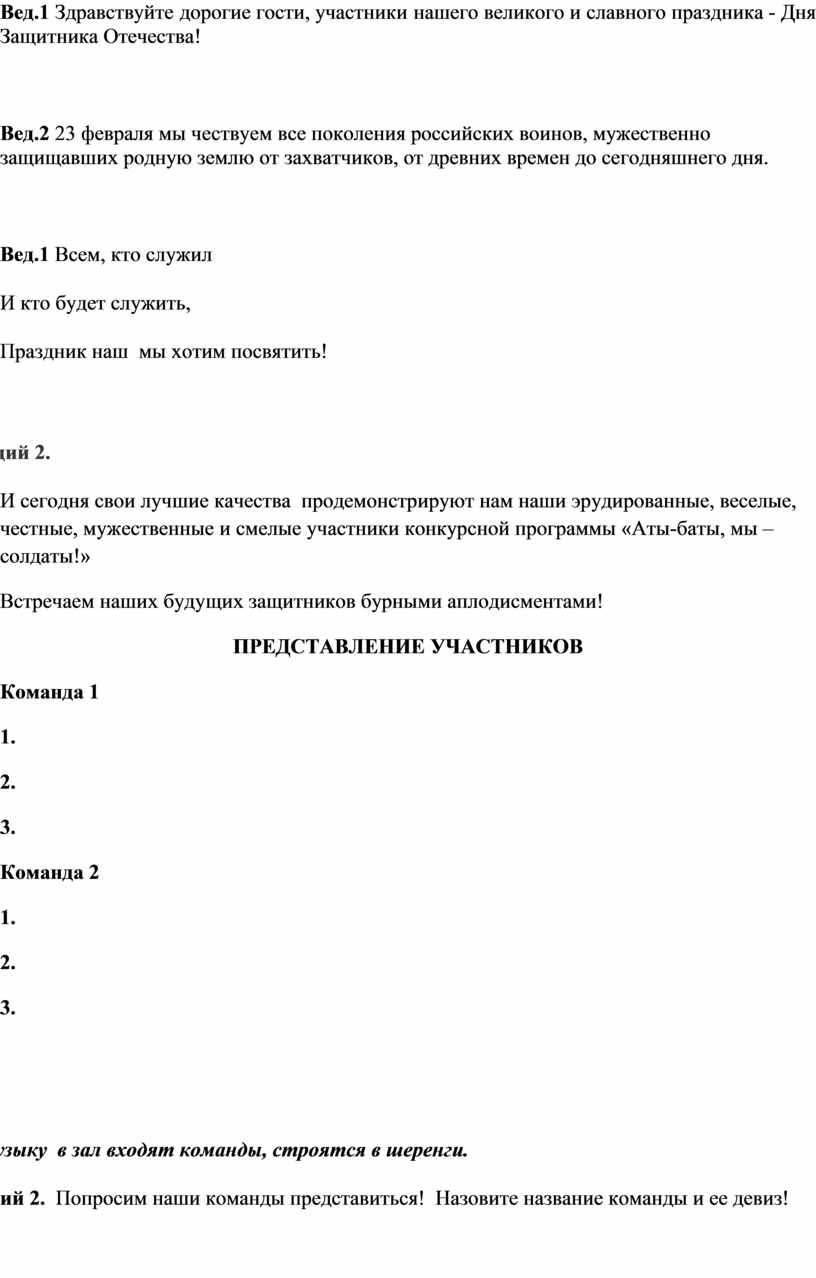 Итак, мы начинаем нашу праздничную программу «Аты-баты, мы– солдаты!»