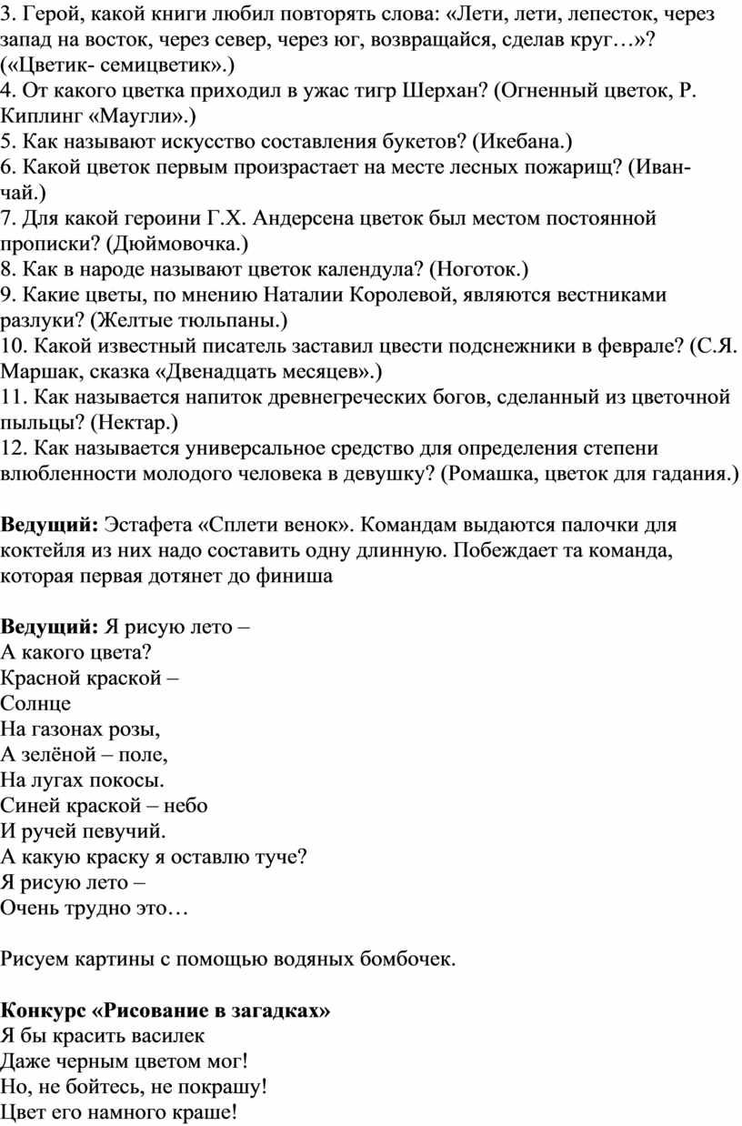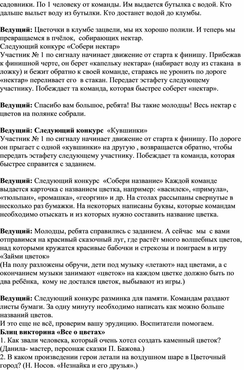 Сценарий конкурсной программы «Праздник цветов»