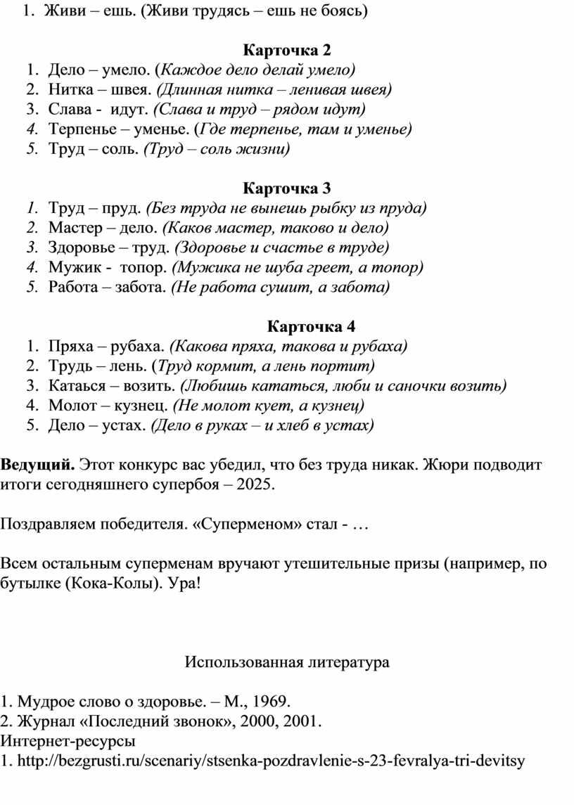 Ведущий. Этот конкурс вас убедил, что без труда никак. Жюри подводит итоги сегодняшнего супербоя – 2025.