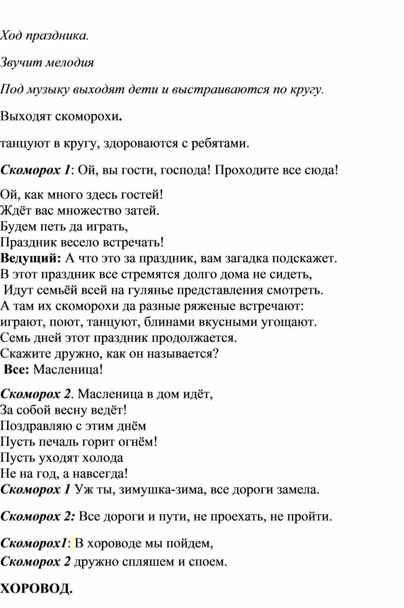 Мероприятие проводится в форме праздника, в котором присутствуют элементы народного театра, игры и конкурсов.