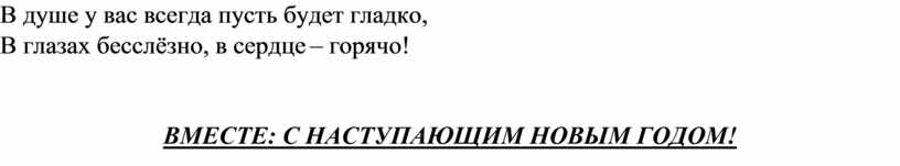 2 ведущий Саша: скоро Новый год, праздник полный чудес и исполнения желаний. Пусть этот год принесет нам мир, здоровье, благополучие. С наступающим вас, Новым годом!