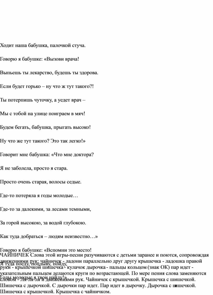 ЧАЙНИЧЕК Слова этой игры-песни разучиваются с детьми заранее и поются,