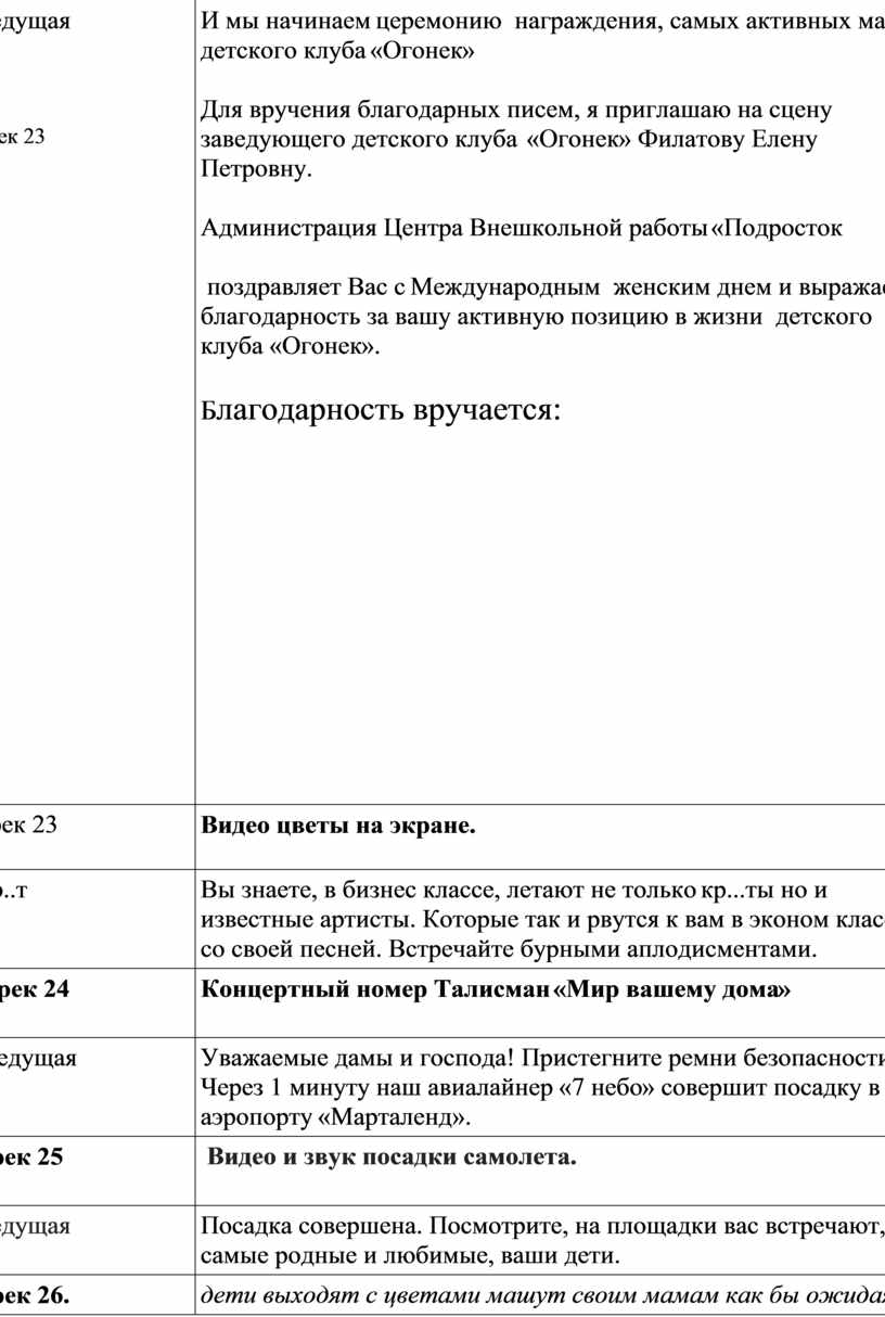 Для вручения благодарных писем, я приглашаю на сцену заведующего детского клуба «Огонек» Филатову Елену Петровну.