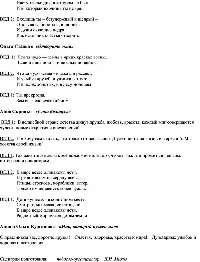 Сценарий подготовила: педагог-организатор Л.И. Михно