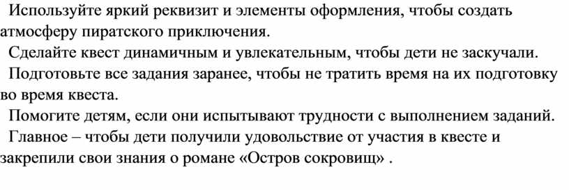 Главное – чтобы дети получили удовольствие от участия в квесте и закрепили свои знания о романе «Остров сокровищ» .