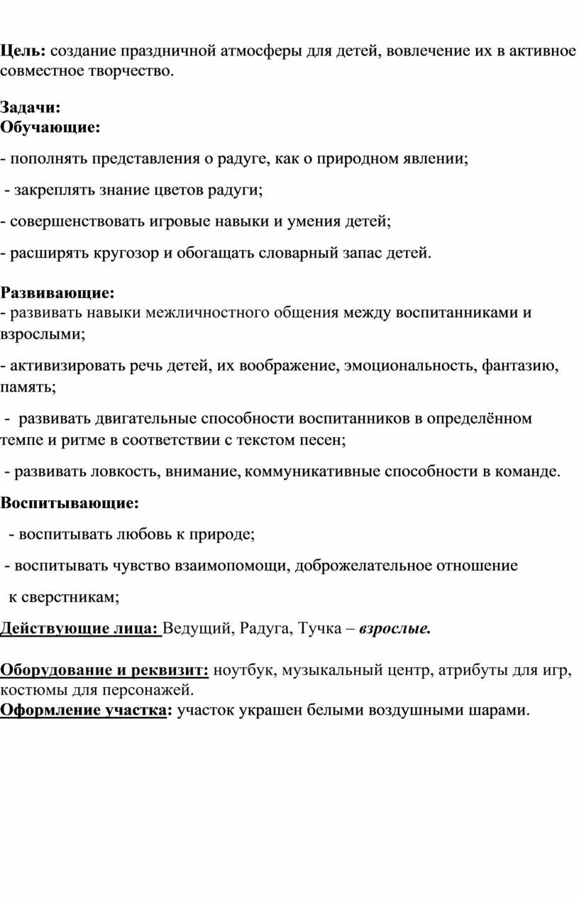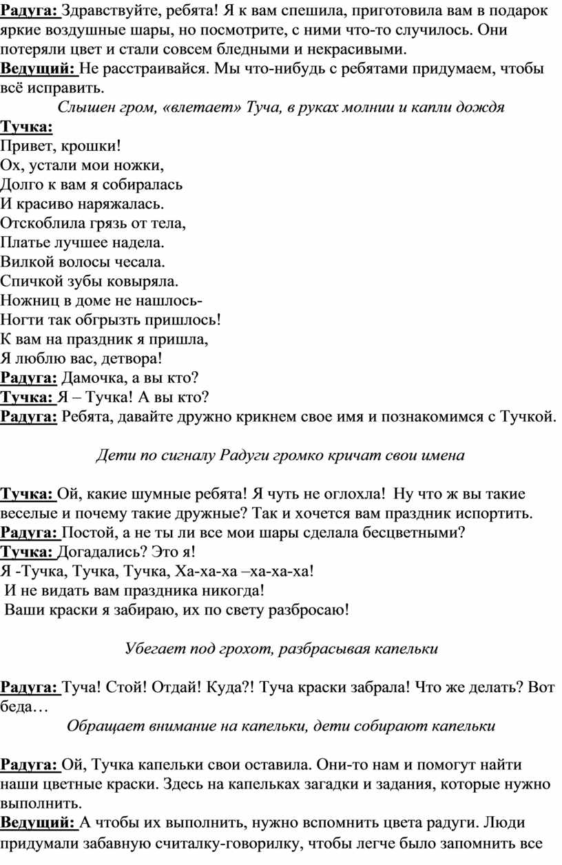 Действующие лица: Ведущий, Радуга, Тучка – взрослые.