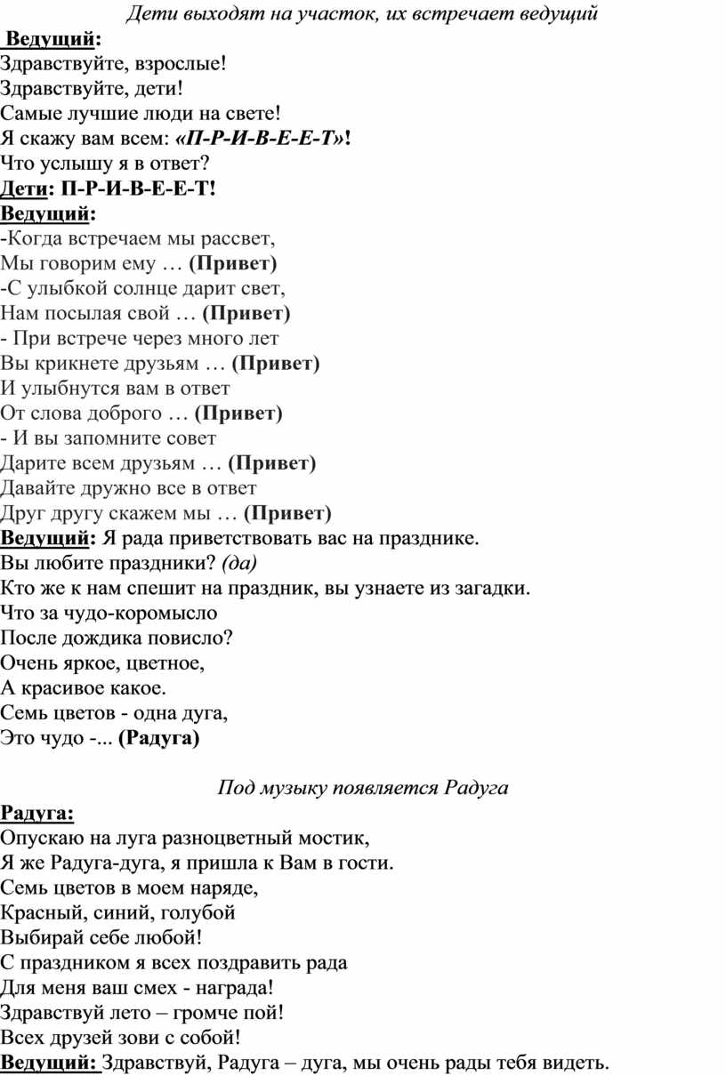 Ведущий: Здравствуй, Радуга – дуга, мы очень рады тебя видеть.
